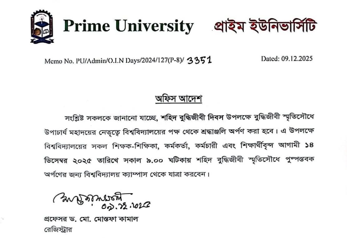 অফিস আদেশ -শহিদ বুদ্ধিজীবী দিবস |