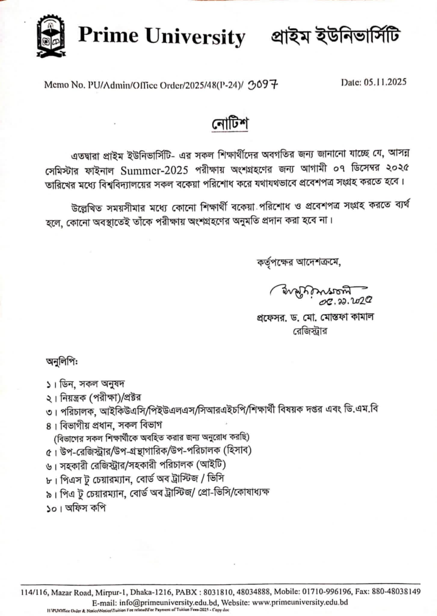 Dues and Admit Card related Notice |